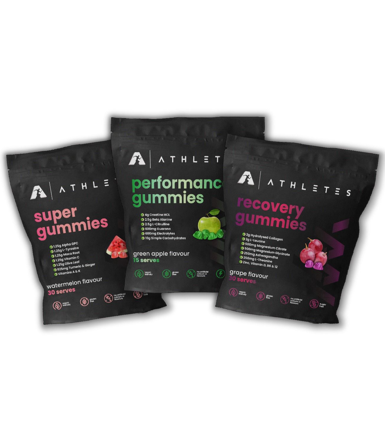 Enjoy our Athletes Super, Performance and Recovery gummies all together and save!